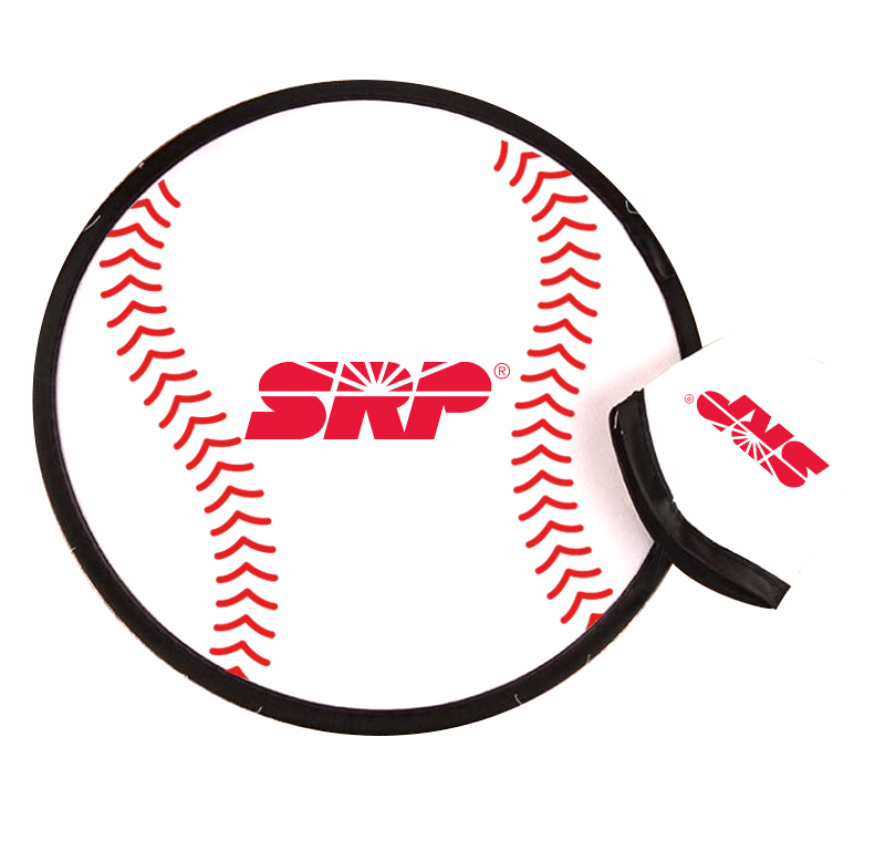 [vc_row][vc_column][vc_column_text]Flexible Flyer Frisbee 10″ round diameter. Great for summer fun, Baseball events. Twist and fold-up to fit inside the convenient travel pouch. Made of 210D nylon polyester with a pre-printed baseball design. Pouch is 3-1/2″ x 4″. Customize with your company logo, brand name, or special message. , use as a fan in hot weather. Fans are packed flat with the pouch attached to flat flyer to avoid metal fatigue. Includes Free air shipping delivered. Price includes 1 color 1 location imprint. Quick Production and delivery. Door to door.