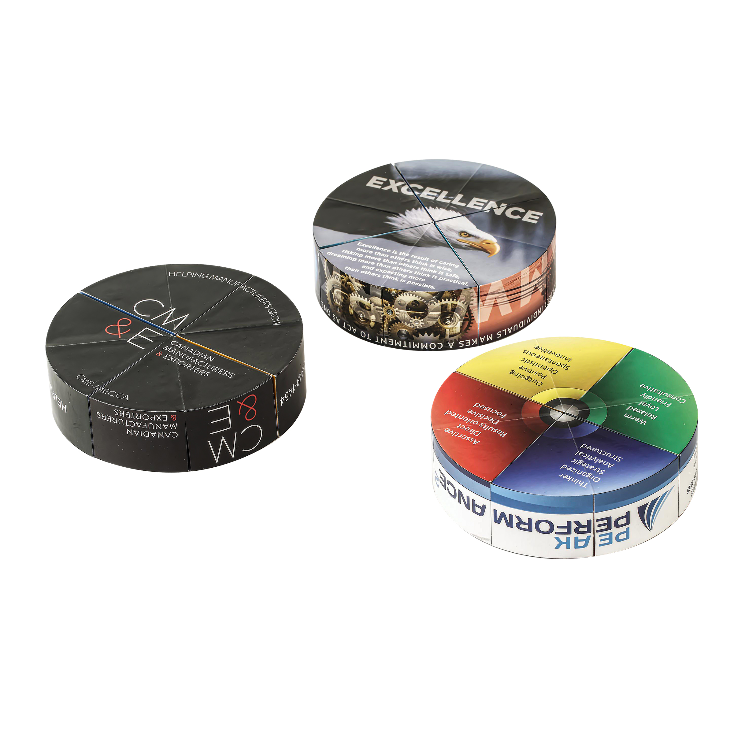 [vc_row][vc_column][vc_column_text css=””]This Round Shape Circle Orbit Puzzle features 24 areas you can customize with your marketing materials and images. This is a fun  interactive puzzle.  Twist, turn to unfold to reveal your puzzle.  The Puzzle Wheel is 4″ Diameter Round with a 1 1/8″ Thickness. The main design a round wheel or Hockey puck shape transforms into many shapes. Full-color process printing included. Perfect graphics, logos, and marketing ideas, enhance brand recognition. Makes a great desktop fidget item and conversation piece. Great for sales meetings, trade shows, premiums, product launches, and education. Quick Production and Delivery Air. Price includes Free Air Freight Door to door.