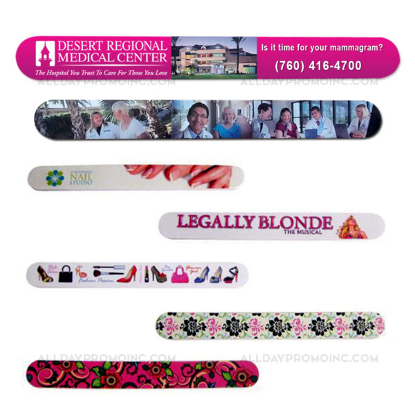 [vc_row][vc_column][vc_column_text]Quality Emery Board Nail File is 7″ x 3/4″ x 1/8″. Thick EVA foam File with up to a 4 color process imprint on front and back. Nail files are the perfect promotional accessory! Great for health care, beauty, and travel industries. Includes full color imprint front and back. Some stock images available. Price includes Air freight Door to Door. Quick Production and Delivery