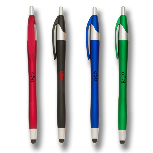 [vc_row][vc_column][vc_column_text]Ballpoint Click-Action Pen and a handy stylus. Metallic contoured body for ultra-smooth writing. Medium writing Ink colors black or blue. Ideal for Swag bags, work-at-home kits, Hospitality industry. Includes Free shipping and delivery Air. Price includes 1 color 1 location imprint.