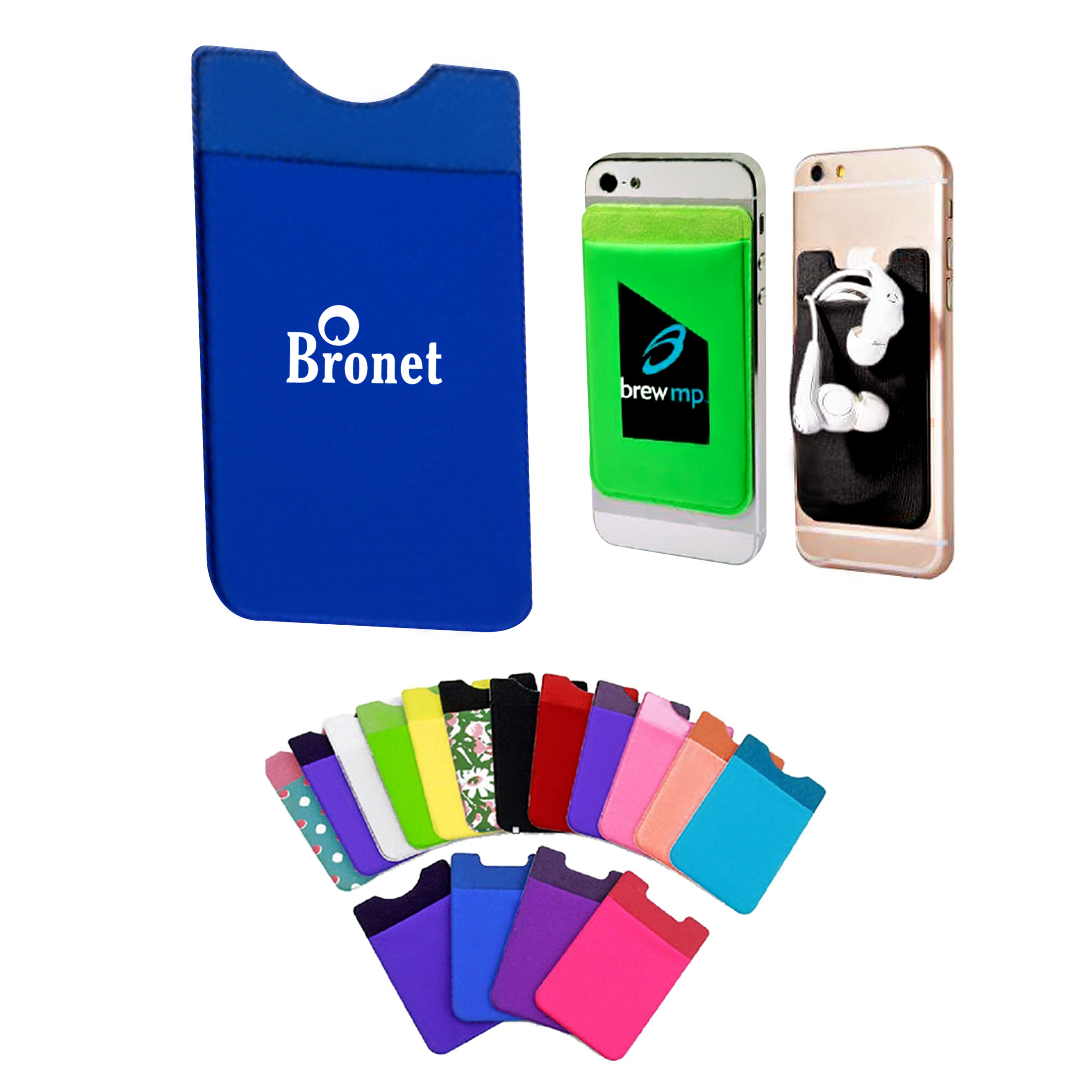 [vc_row][vc_column][vc_column_text]Multi-purpose Cell Phone wallet with a stretchy Lycra fabric Pocket. Can hold Hold multiple items Credit cards , Gym cards , Ear buds , keys. Features strong sticky 3M backing, textured center to keep business or credit cards secure. Excellent stretch capacity to fit multiple cards. Many colors to choose from. Works with iPhone and Android. Perfect for college, university, health, fitness, tradeshows, charity walk/runs, conferences, technology, hotels and hospitals.