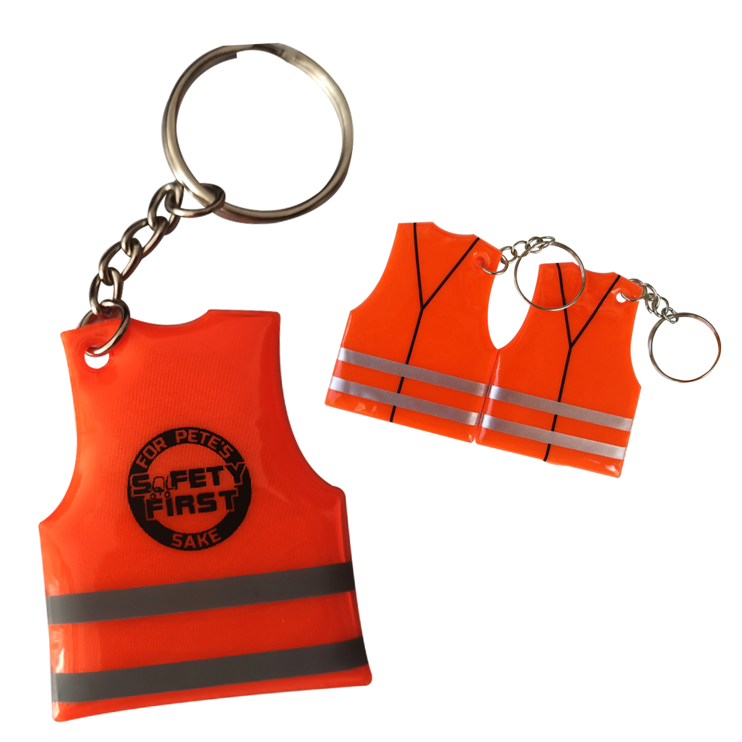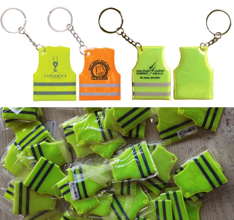 [vc_row][vc_column][vc_column_text]Reflective Safety Vest key tag with a split-ring or clip attachment. Made of Bright Florescent Hi-Visibility Soft PVC materials with 2 reflective stripes. Never lose your keys again. Attach to bags and packs. Imprint on both sides. Neon Reflective Key Tags is ideal for safety programs, construction, boating, Road-work, logistics, Bio-hazard campaigns, National Safety Awareness week. Size 2-1/4″ x 1-5/8″ x 1/8″. Contact us for other sizes and custom shapes. Includes 1 color 1 location Imprint. Includes Free Air shipping door to door. Quick Production and Delivery