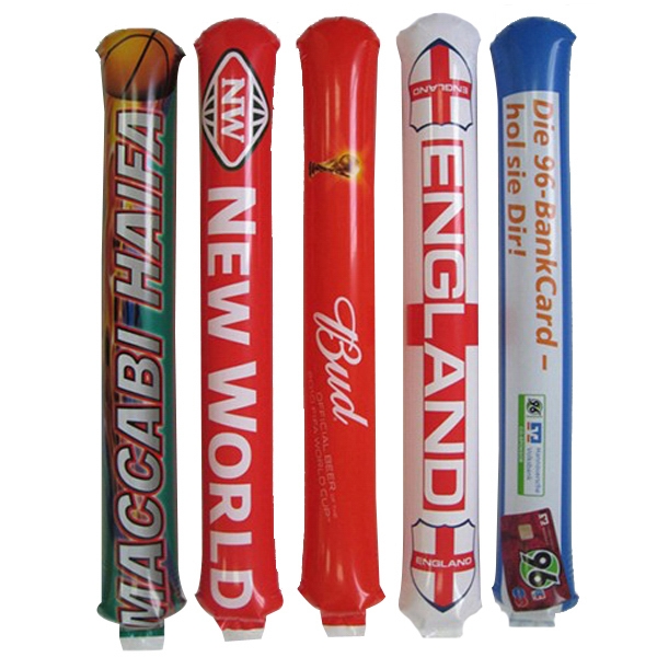 [vc_row][vc_column][vc_column_text]Custom Inflatable Thunder Stix-Sticks made of PE. Quality self-sealing inflatable spirit sticks. Bang together to make noise for a thundering boom. Show your team spirit or just wave them together to show your support! 1 set includes: 2 balloons & 1 straw in poly bag. Easy Handout Item. Price is based on 1-color printing with the same printing on both sticks. Includes shipping by air door to door.