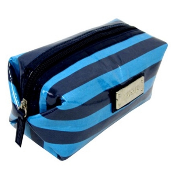 Toiletry travel bags made of cotton composite PVC+mirror-surface leather. Features a sturdy zipper closure. Perfect for travel agencies, hotels, gift baskets, salons, and employee gifts. Price is based on 1-color metal alloy logo 1- location.