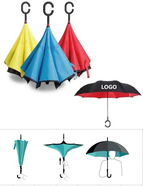 [vc_row][vc_column][vc_column_text]Fun and Function! Double-layer Reversible Umbrella. Easy to Reverse Color & Close this umbrella. Large enough to shelter both you and another from a sprinkle to a downpour. Convenient when getting in and out of a car, bus or train when there are a lot people around. 35.4 inch long and 45.2inch in diameter when open. Manual open and closed. Your requests and logo are welcome. Price is based on 1-color printing, 1-location and includes shipping by air.
